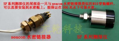 - 该产品主要用于水下机器人避障、测深、测高等,也可用于泥位测量。SF0051增加了串口通信地址,上位机用1个串口就能挂接多个测深仪,用于测量不同方向上的目标距离,特别适合水下机器人全方位避障。产品采用一体化结构,前端黑色部分是聚氨酯包裹的换能器,后端是316不锈钢水密电子舱,全部电路都集成在316不锈钢水密电子舱内,供7V~12V直流电源就能工作,具有体积小、重量轻、测量盲区小、使用方便的特点。测量结果为16进制的距离数据,通过RS485串口输出(也可以选择TTL串口)。赠送两套专业的上位机软件,软件可运行在Windows系统的笔记本、平板等电脑上,可以连续测量并记录所测量到的数据,用深度(距离)时间历程曲线或瀑布图的方式进行实时显示。测量结束后,可以进行数据回放。提供串口通信协议,根据串口通信协议可以进行产品二次开发。
