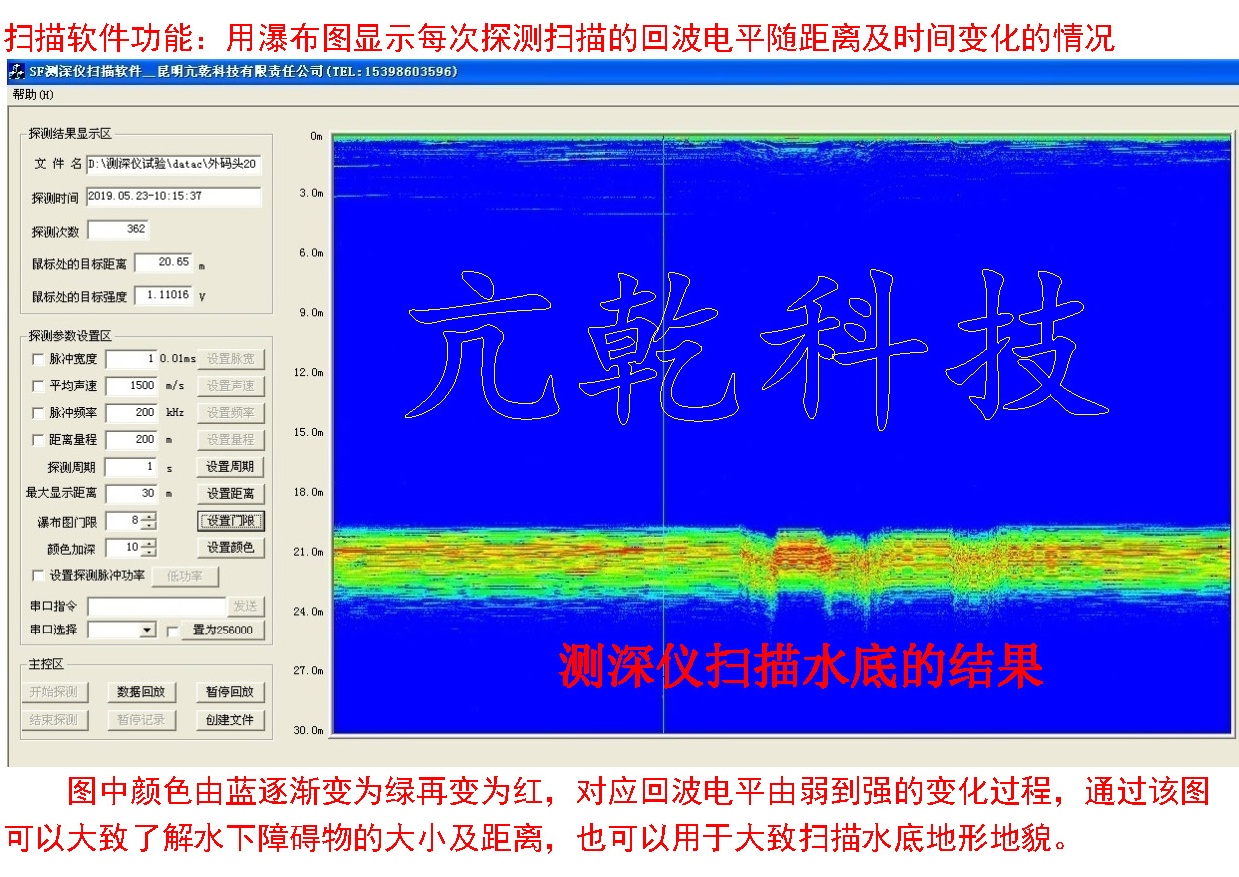 2) 探测距离(量程):0.2m~55m(最远探测距离与目标强度及水质相关,初始量程为55m);